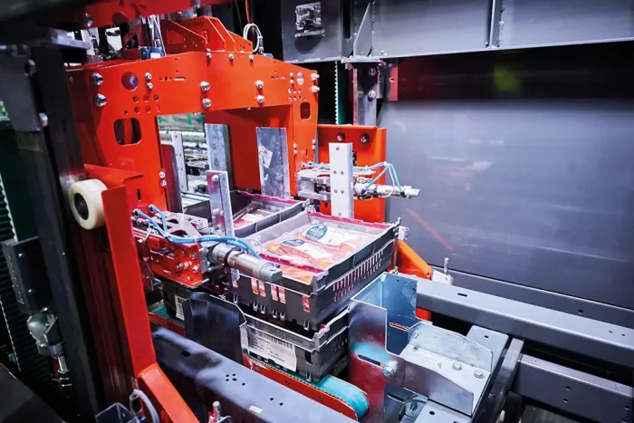 FAST Picking stellt Aufträge für die Filialbelieferung schnell und optimiert zusammen. Vollautomatische Prozesse im Wareneingang und -ausgang sorgen hierbei für eine effiziente sowie fehlerfreie Auftragsabwicklung und entlasten die Mitarbeiter von körperlich anstrengenden Tätigkeiten. Das Herzstück der Lösung, das OSR Shuttle™ Evo, umfasst sechs Gassen und 14.000 Stellplätze für ein breites Artikelspektrum.