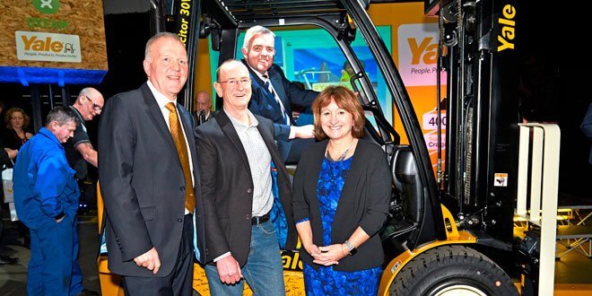 Im Yale-Werk im nordirischen Craigavon lief im Jänner 2016 der 400.000ste Stapler vom Band. Diese Gelegenheit nutzte der Staplerhersteller, um – ganz nach seinem Leitspruch „People, Products, Productivity“ – das Gerät im Rahmen einer exklusiven Veranstaltung der internationalen Wohltätigkeitsorganisation Oxfam zu übergeben – von Menschen für Menschen.